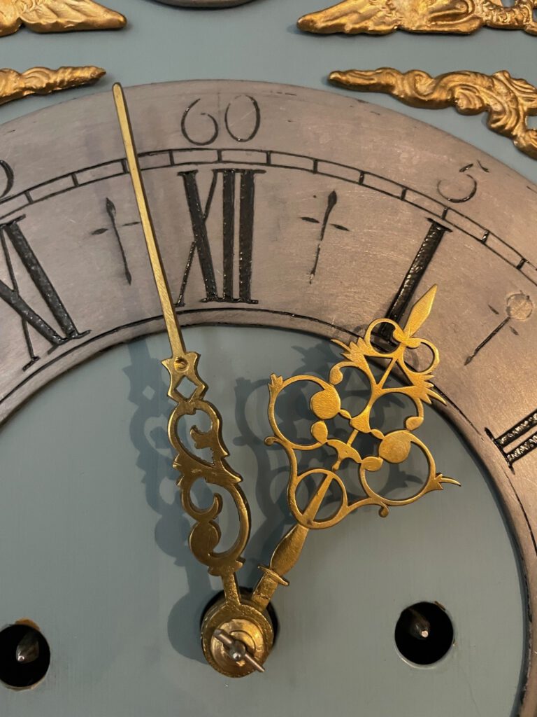 Die unterschiedlichen Generationen der Uhren zeigen unterschiedliche Zeigerformen, barocke Zeiger wurden von den weniger verschnörkelten Zeigern der klassizistischen Uhren abgelöst.
